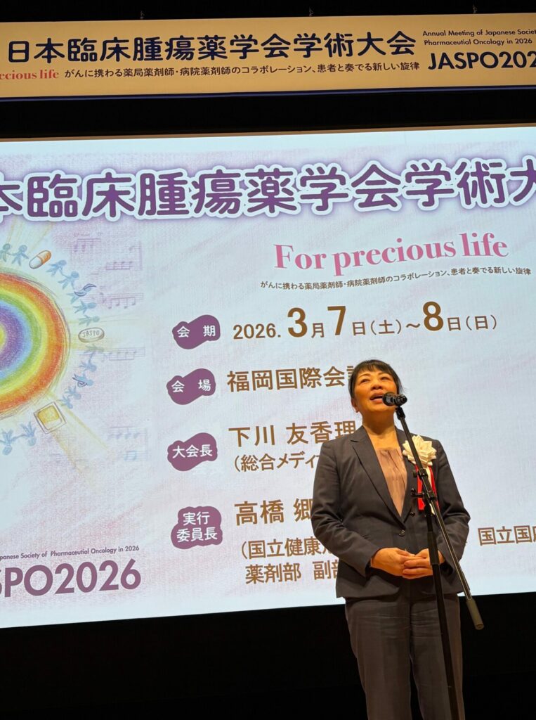 総合メディカルグループ株式会社(本社:東京都千代田区/福岡県福岡市、代表取締役社長:多田 荘一郎)は、2026年3月7日(土)〜8日(日)に福岡市で開催された「第15回日本臨床腫瘍薬学会学術大会(JASPO2026)」に参画しました。本大会では、当社執行役員の下川友香理が大会長を務め、「For precious life:がんに携わる薬局薬剤師・病院薬剤師のコラボレーション、患者の奏でる新しい旋律」をメインテーマに掲げ、地域医療の新たなあり方を提唱しました。
